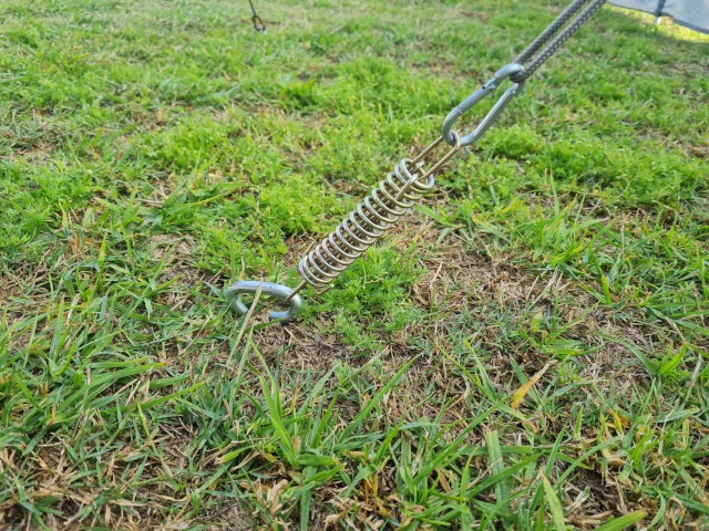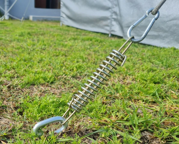 Made from high-quality spring steel and utilizing tension springs, this tent peg is designed to withstand strong winds and provide a secure anchor for your tent.