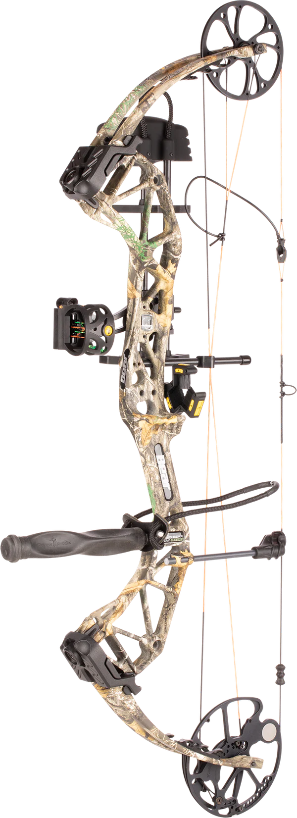 The Paradox is a high-performance single cam system that shoots 330 feet per second delivering maximum performance at an incredible price in a maneuverable 32” axle-to-axle platform. The innovative riser and ShockWaves limb dampening device are designed to improve accuracy and reduce vibration with each shot. The Paradox features Bear Archery Contraband string and cables ensuring legendary performance for seasons to come. With premium finishes and features of a compound bow that would cost hundreds more, the Paradox disrupts the price to performance ratio.