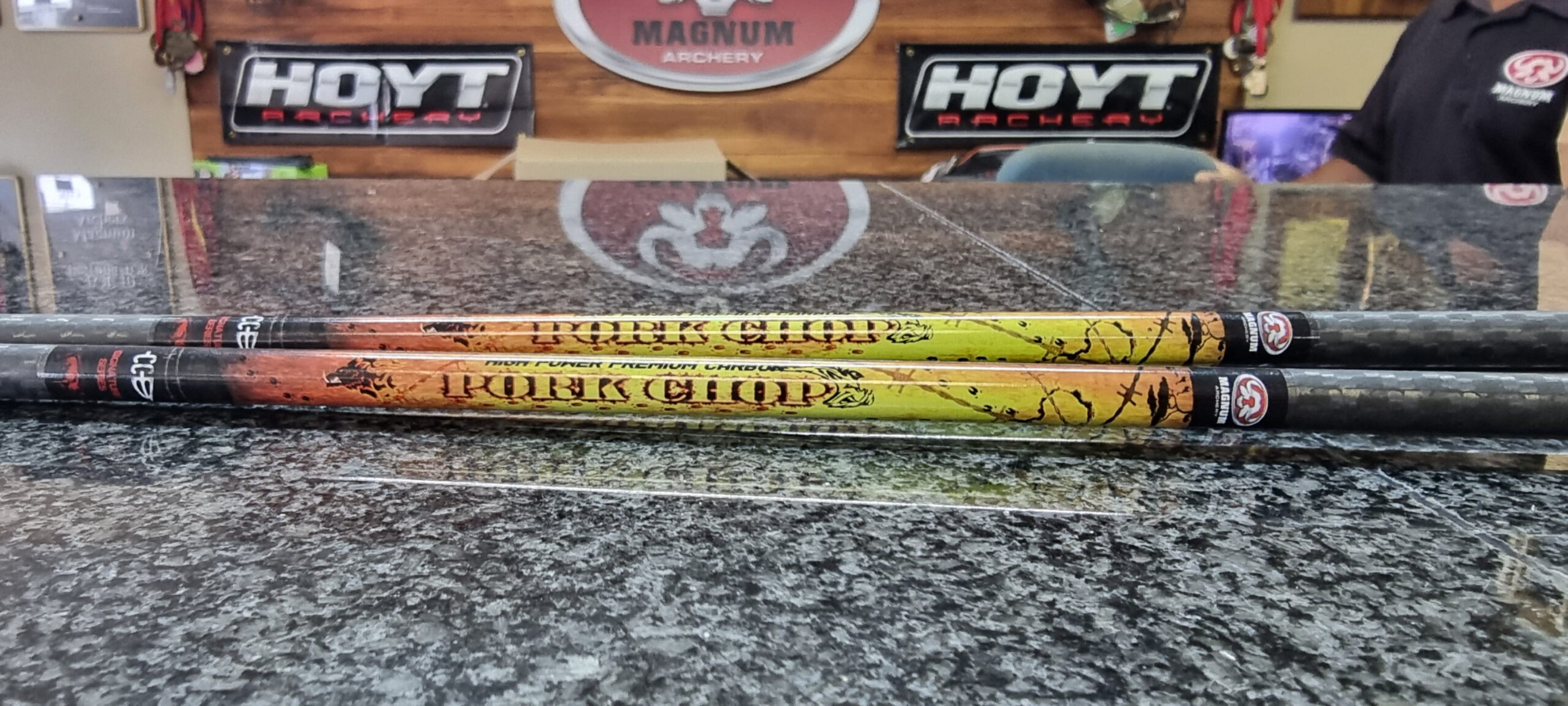 The Pork Chop is an excellent value for money, high quality, 100% Pure Carbon Crossbow Bolt, That Was Designed With The Serious Bowhunter In Mind. Available in 20'' and 22'' bolts pre-fletched, includes insert and 100gr field point.