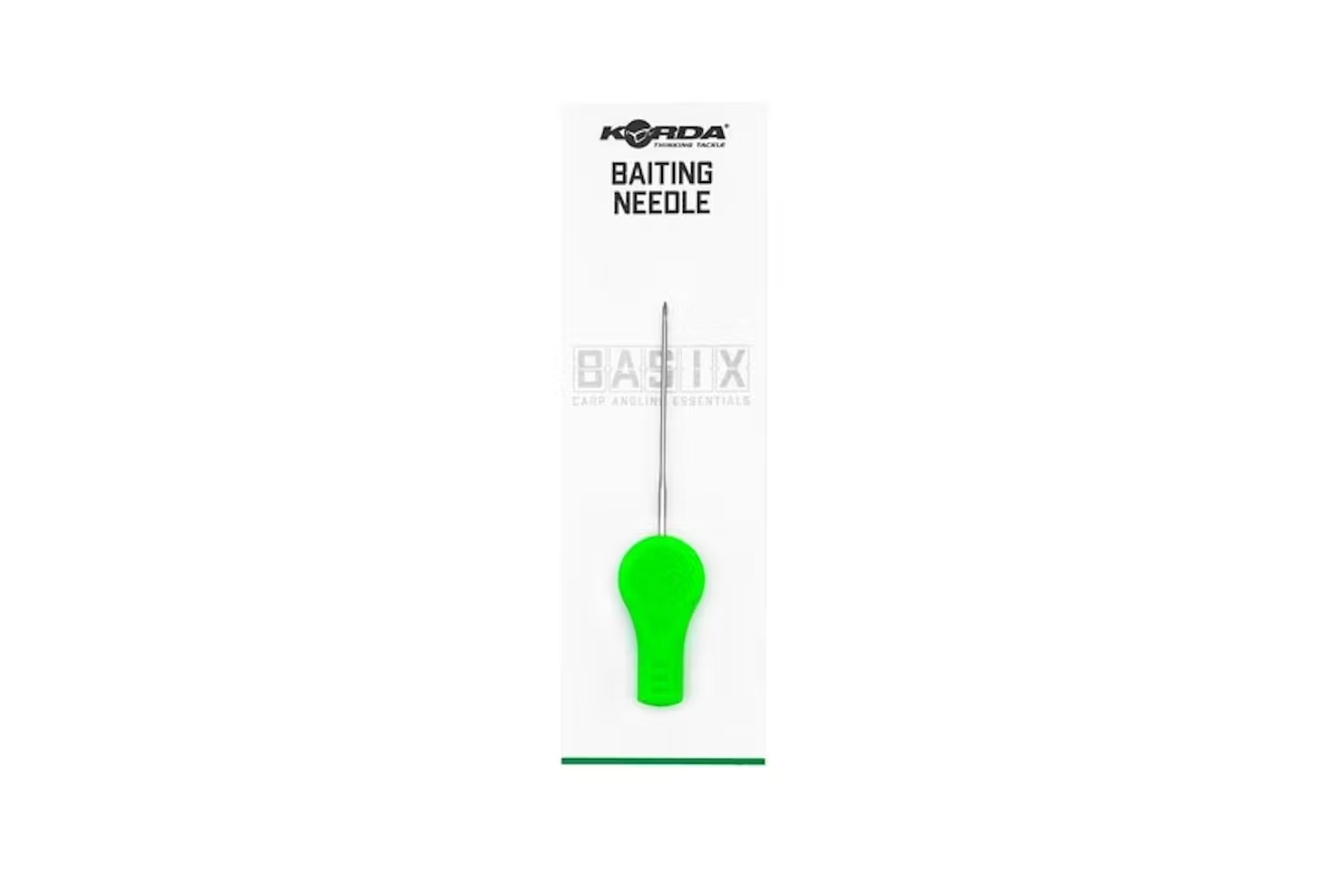 The Basix Baiting Needle can be used with most baits, as it is sharp and strong, meaning that it can be pushed through most harder baits without fear of splitting them. The ‘crook’ on the end has been designed to hold your hair in place whilst the bait is threaded onto it, off of the needle, but without danger of it fraying braided materials or causing them to separate, which can make it hard to insert a hair stop. The bright green handle has been ergonomically designed, and should you drop it on the ground makes it easier to find. The chrome-plated needle has been designed to last and won’t rust.