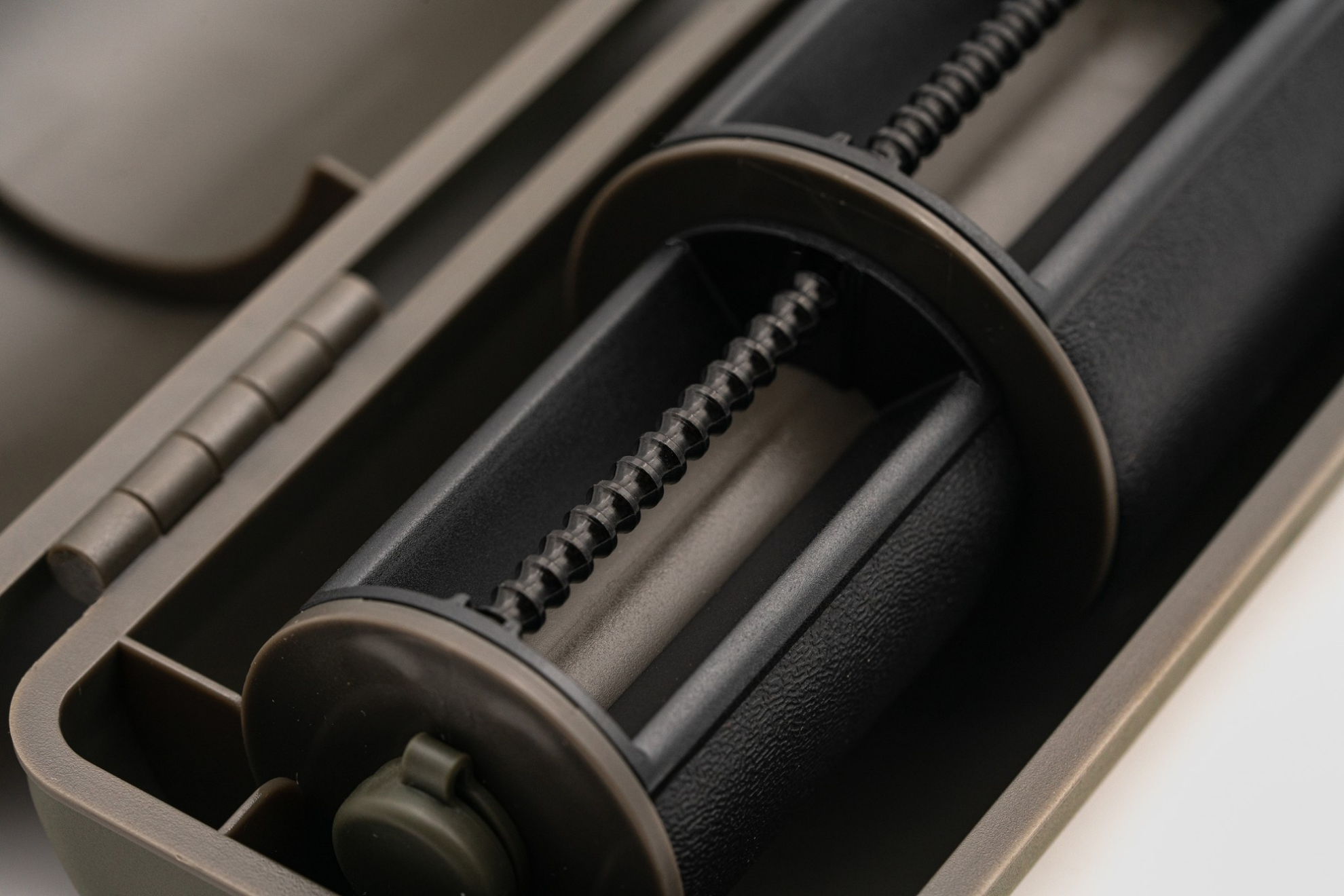 Cylindrical foam design to store the perfect shape chods Machined, grooved aluminium hook retaining bar Additional space for leaders Pull out the handle to allow steaming of the perfectly shaped curve Magnetic fasteners