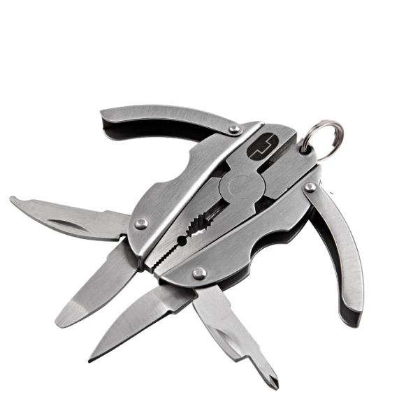 6 ESSENTIAL EVERYDAY TOOLS 6 essential tools for your keyring Strong pliers and wire cutters Knife and file Philips and flat screwdrivers Keyring attachment included Stainless steel TU204G Scarab Size: L50 x W35 x D7mm Weight: 46g